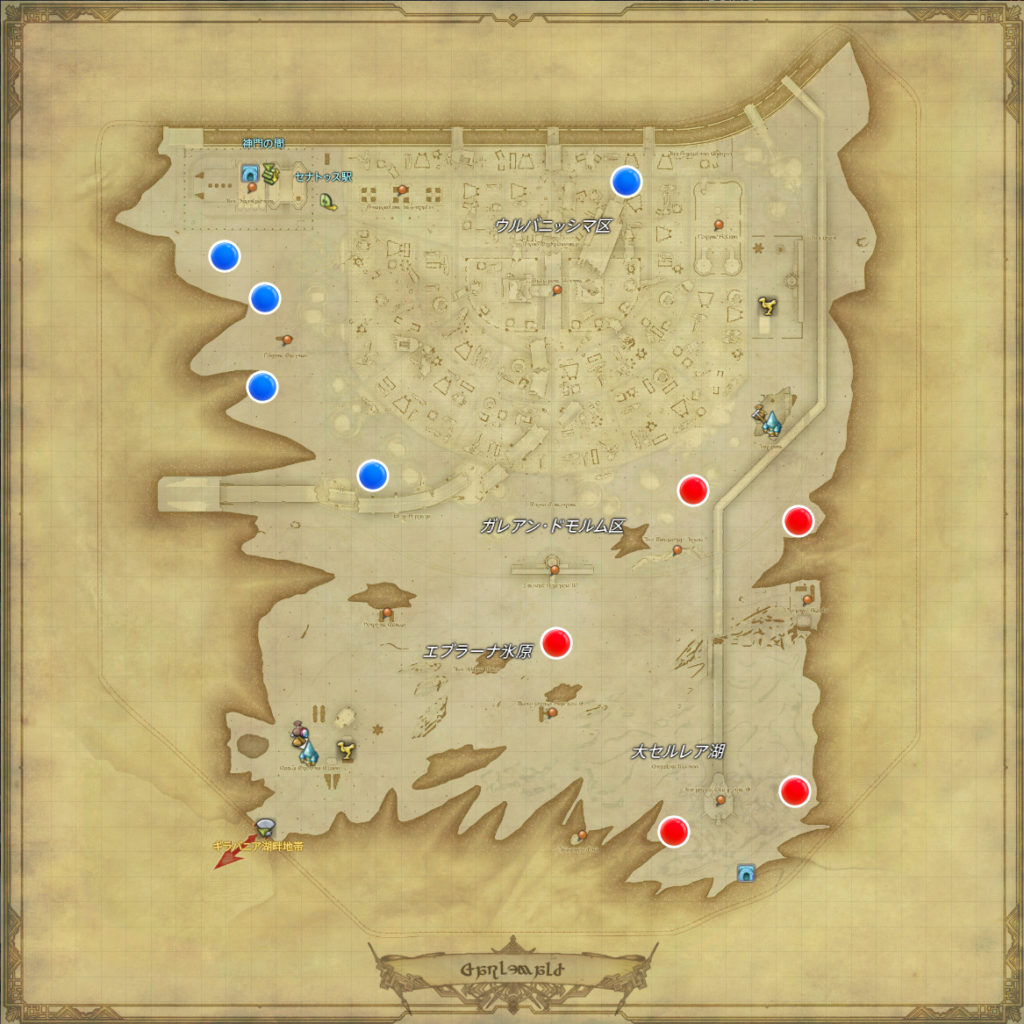 「蒼天のイシュガルド」~「黄金のレガシー」までのBモブ出現場所(POP位置)をまとめています。